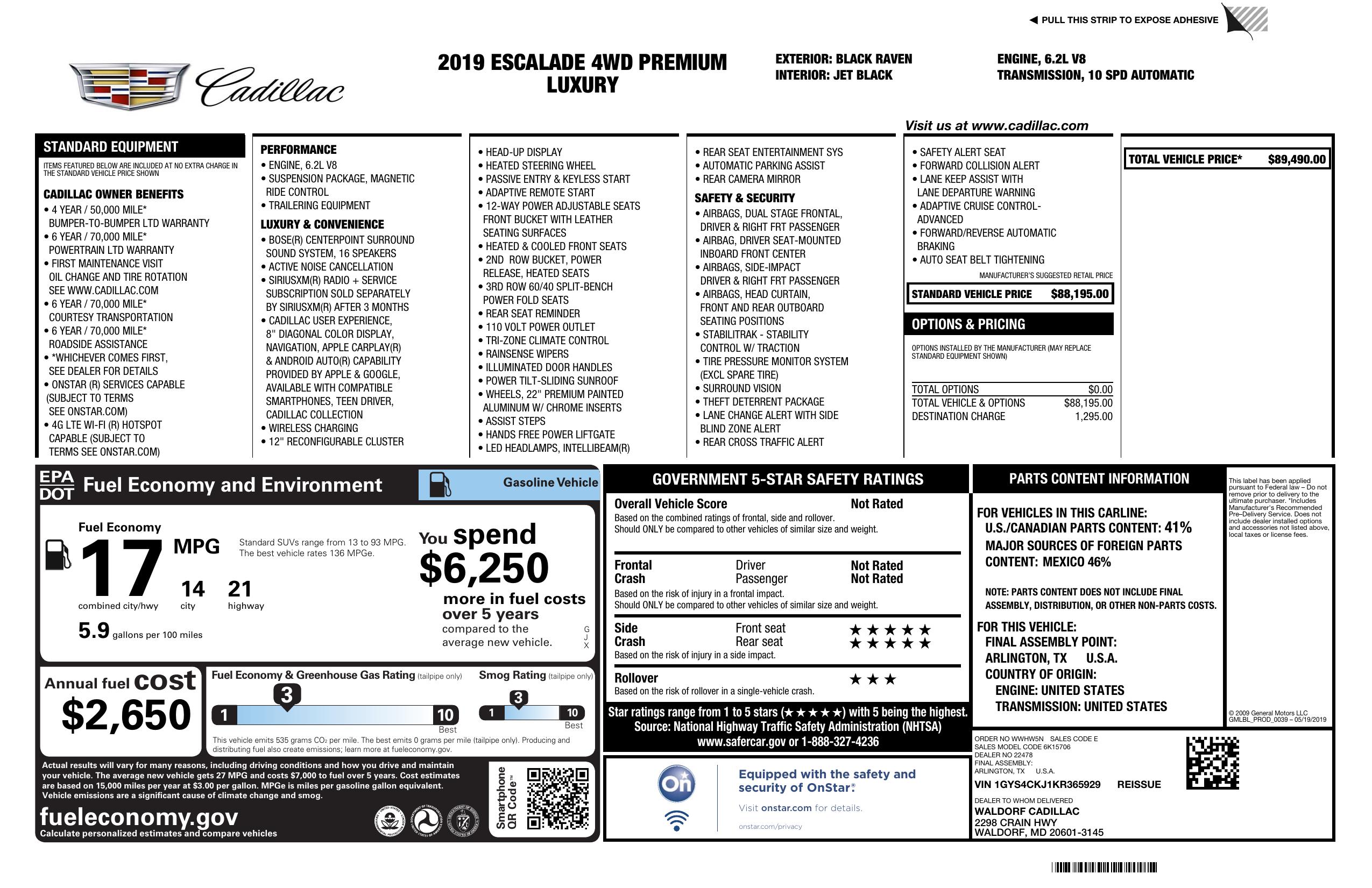 2019 Cadillac Escalade 4WD 4dr Premium Luxury
