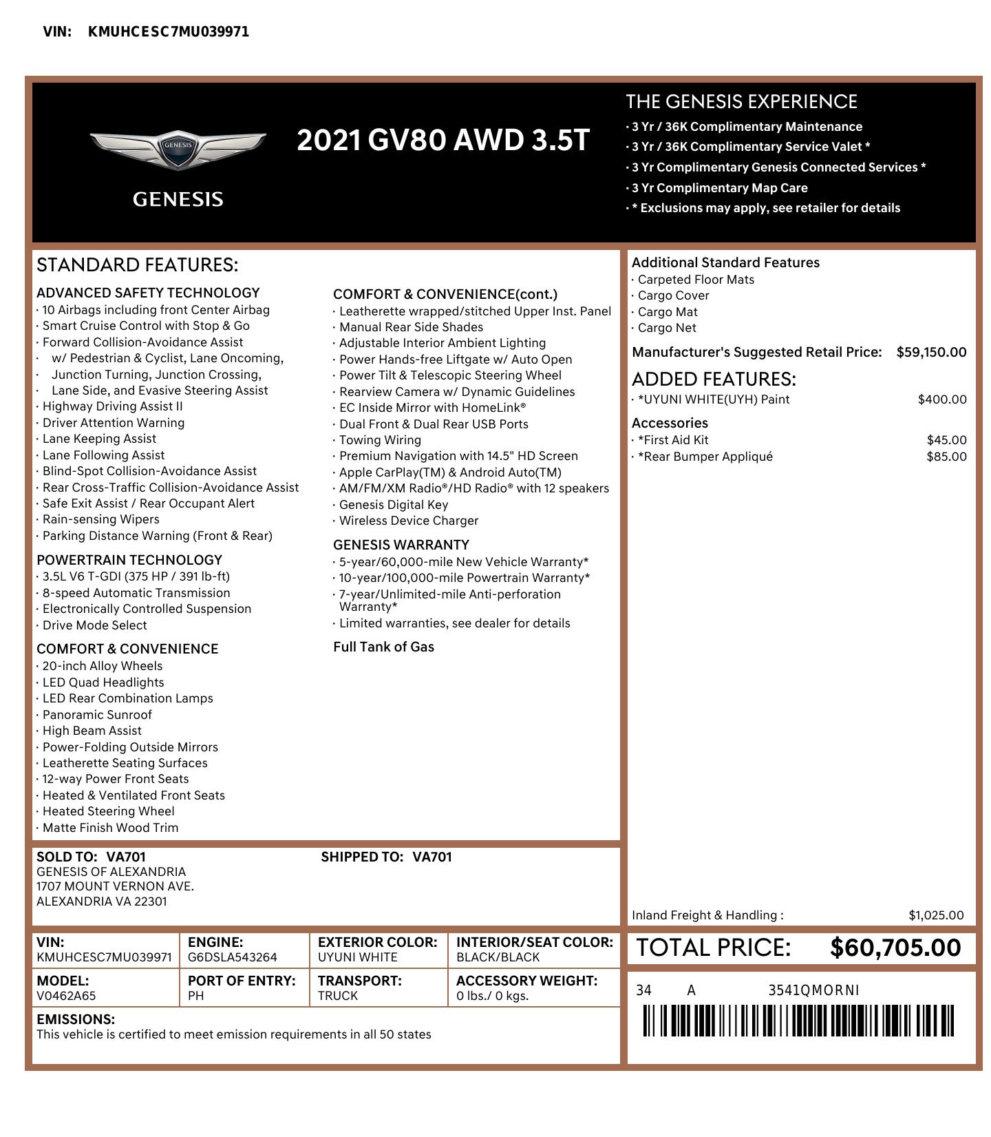 2021 Genesis GV80 3.5T AWD